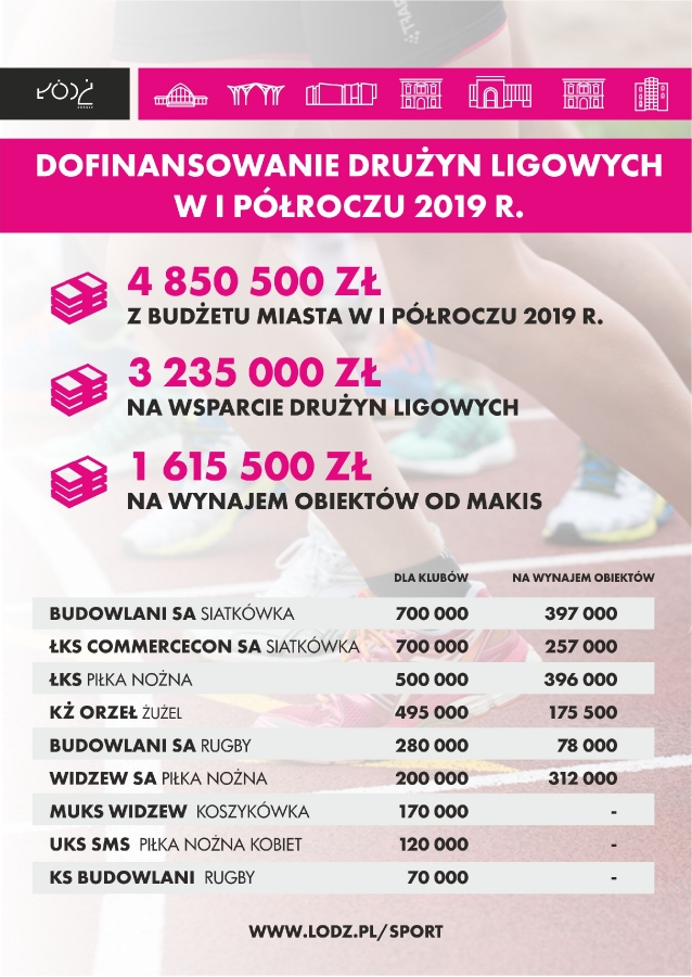 Władze miasta nie zapomniały też o żużlu, rugbystach czy koszykarkach. W ubiegłym roku na wsparcie drużyn ligowych przeznaczono niespełna 4,5 mln zł, w tym roku kwota ta wzrosła o blisko pół miliona. Łódź aktywnie wspiera sport i jego rozwój, nie tylko dofinansowując kluby, ale także inwestując w infrastrukturę sportową.