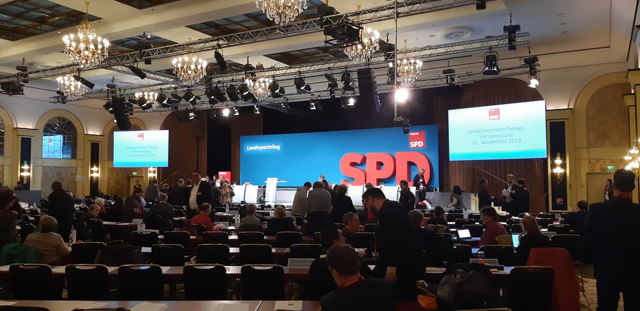 Berlińska organizacja partyjna SPD liczy ponad 20 000 towarzyszy. Przewodniczącym SPD Berlina jest Michael Müller, a jego zastępcą pełniącym obowiązki szefa frakcji SPD w Parlamencie Berlina Palestyńczyk z urodzenia Raed Saleh. Obaj przedstawiali perspektywy rozwoju Berlina. Chodziło o strategiczne decyzje w trosce o wększą sprawiedliwości: zwiększenie dochodów i ulżenie berlińczykom. W dyskusji nad programem SPD dążą do tego, aby siła ekonomiczna miasta dotarła do wszystkich berlińczyków.
